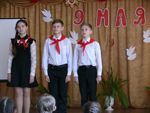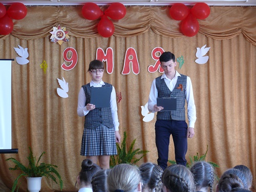 9 мая учащиеся 7-х – 11-х классов, все педагоги и администрация школы принимали участие в митинге, посвященном 71-ой годовщине победы в Великой Отечественной войне. Часть юношей 9-х классов в составе «Бессмертного полка» пронесли портреты земляков погибших в ВОВ. С 12.00 час учащиеся школы встали на вахту памяти у вечного огня, а для учеников 4-х и 5-х классов в это время проводилась игровая программа на площади у фонтана.