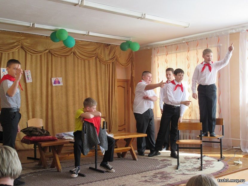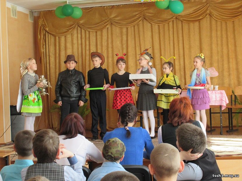 16 марта - состоялись «Театральные подмостки» для 3-4-х, которые показали сценки по мотивам произведений А. Барто «Птичий рынок», К. Чуковского «Муха-Цокотуха», В. Бианки «Аришка-трусишка». Жюри в составе педагога-организатора Елиной А.Н., актрисы народного театра «Лица» Дюбиковой И.А., руководителя любительского клуба парка культуры и отдыха Бабаревич Н.В. решило, что победили 4-е классы (кл. рук. Олистратенко О.В. и Сорока С.П.).