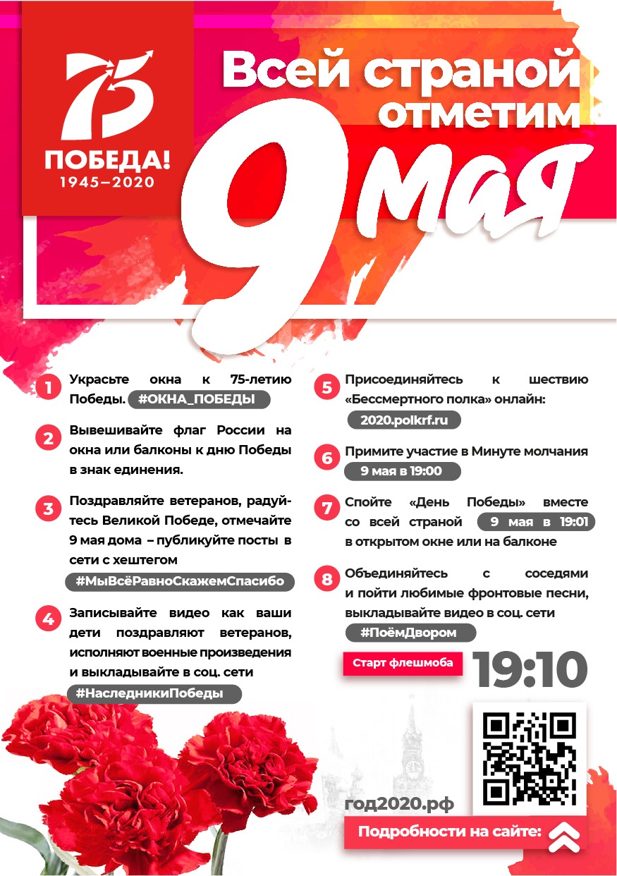 9 мая 2020 года пройдет акция “Бессмертный полк” 2020 в режиме онлайн дома в связи со сложной эпидемиологической ситуацией. Акция так и называется “Бессмертный полк онлайн”. Вы тоже сможете принять участие в акции и почтить память подвига Героев.
