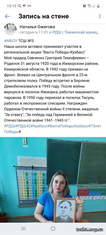 Ребята нашей школы приняли участие в региональной акции "Вахта Победы –Кузбасс". Участники акции поделились историей своей семьи.