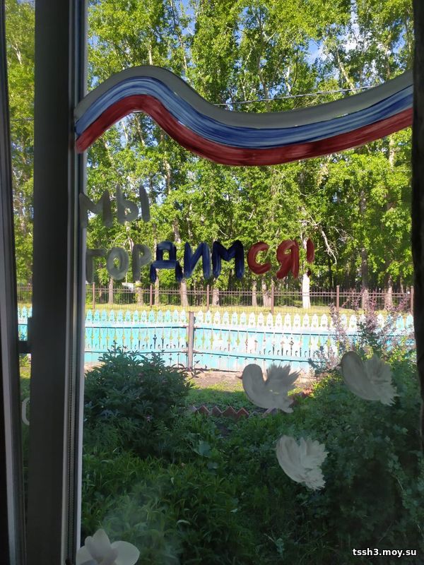 1) Украсить свои окна рисунками, картинками, надписями, посвященными России, своей малой Родине (городу, поселку, деревне), семье с помощью красок, наклеек, трафаретов, чтобы украшенное окно было видно с улицы.