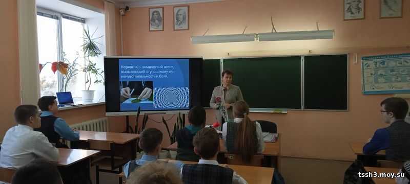 В 8 "А" классе прошла видео беседа "Наркотики - путь в никуда", Дюбикова Г.Е., соц. педагог школы, Даниленко О.А., учитель биологии, Тарасова Е.В., ответственный секретарь комиссии по делам несовершеннолетних и защите их прав, рассказали ребятам о вредном влиянии ПАВ на неокрепший организм человека, о работе КДН и ЗП, об ответственности за употребление ПАВ.
