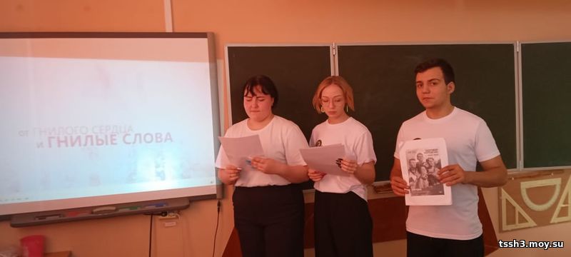 Ребята 8 "Б" кл. приняли участие в дискуссии на тему: "Популярность. Культура и мат". Студенты Тяжинского Агротехникума - волонтеры РСМ поговорили с присутствующими о чистоте речи, о культуре поведения.