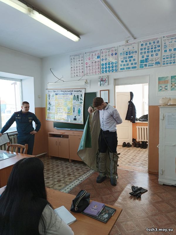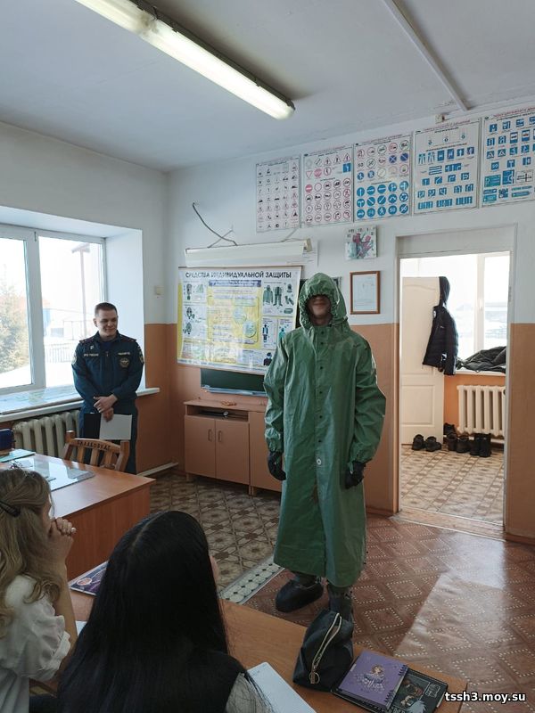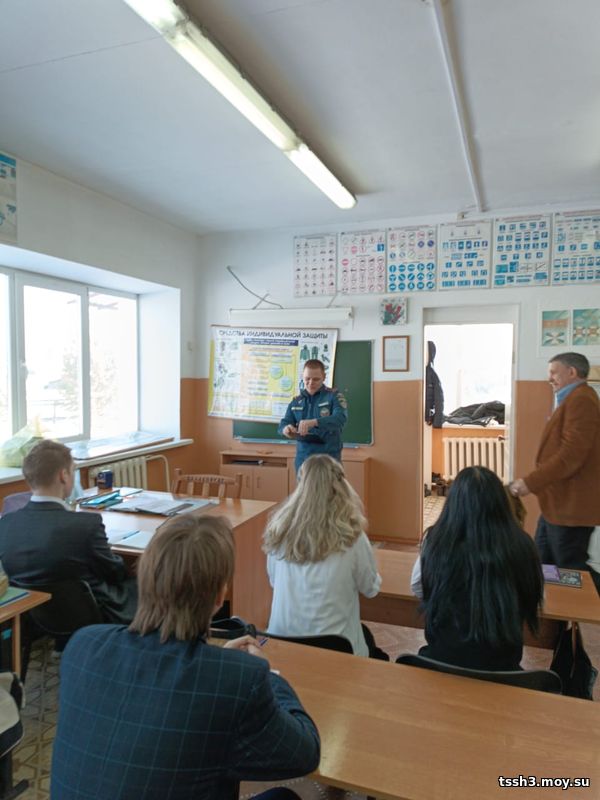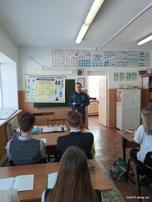 6 марта, в рамках "Открытого урока ОБЖ" старший инспектор отдела надзорной деятельности и профилактической работы Тяжинского и Тисульского районов УНДПР Главного управления МЧС России по Кемеровской области – Кузбассу Чабанов К.Д. провел беседу с учениками 10 класса на тему: "Индивидуальные средства защиты. Их практическое применение".