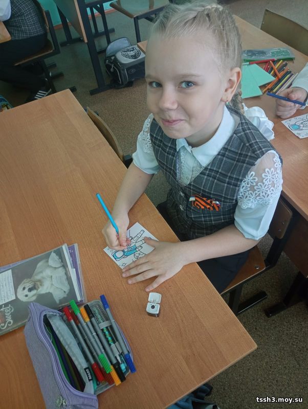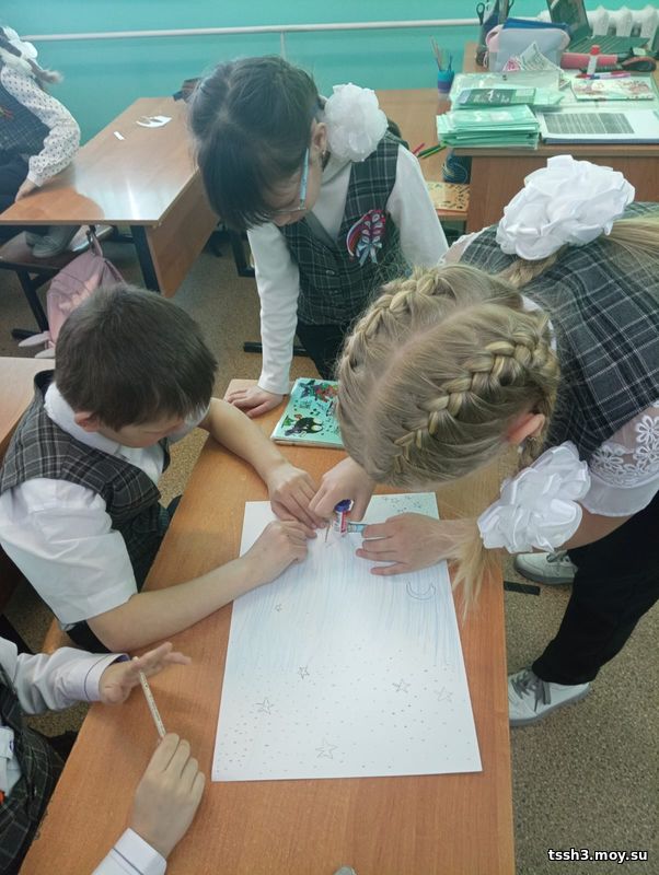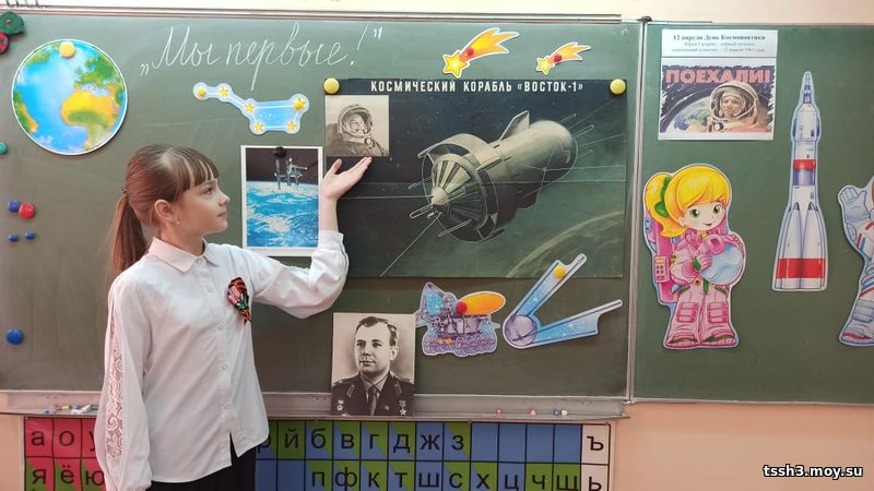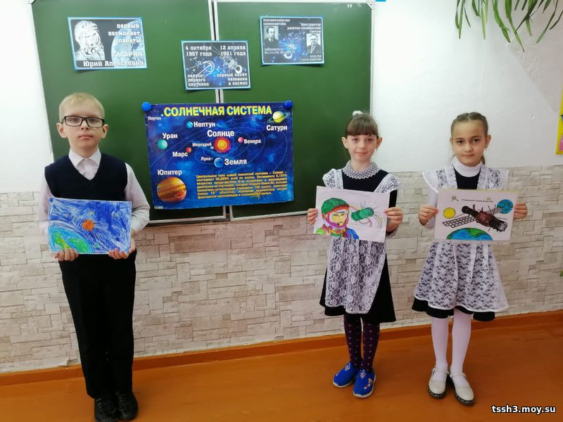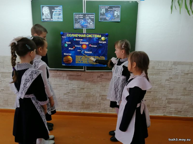На классом часе, посвящённом Дню космонавтики, ребята 2В класса посмотрели фильм о первом космонавте Ю. А. Гагарине, познакомились с планетами Солнечной системы, отвечали на вопросы викторины, выполнили творческую работу.