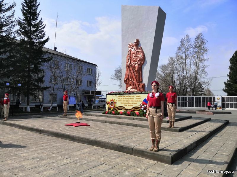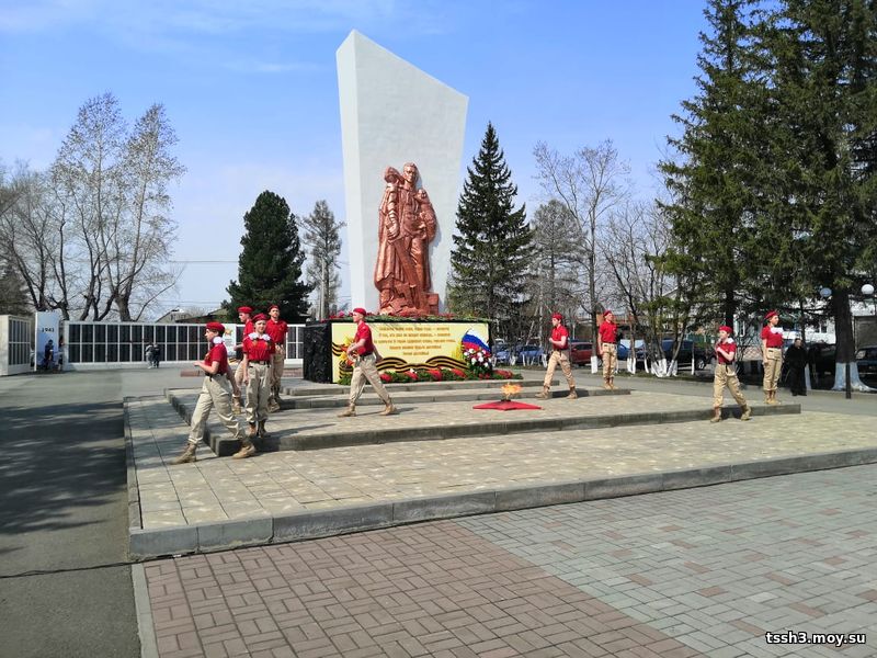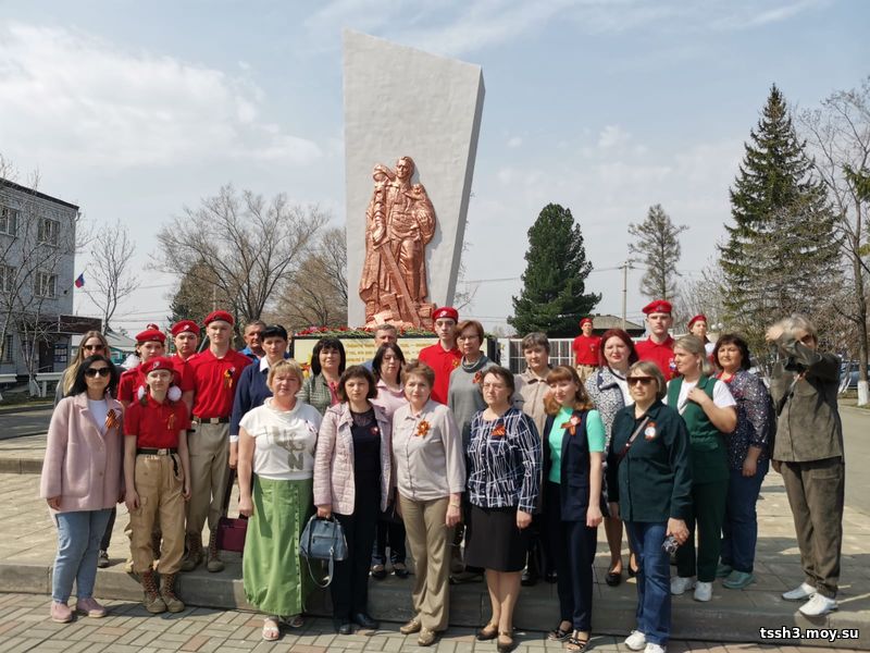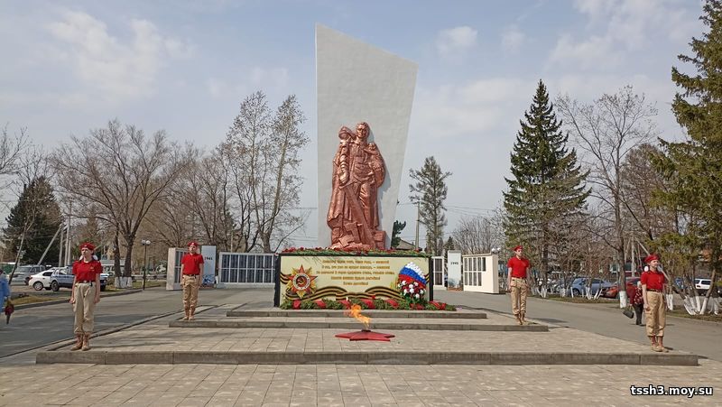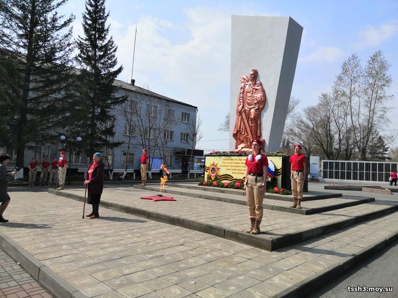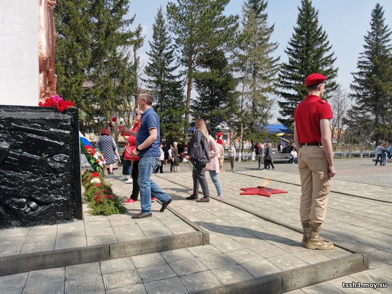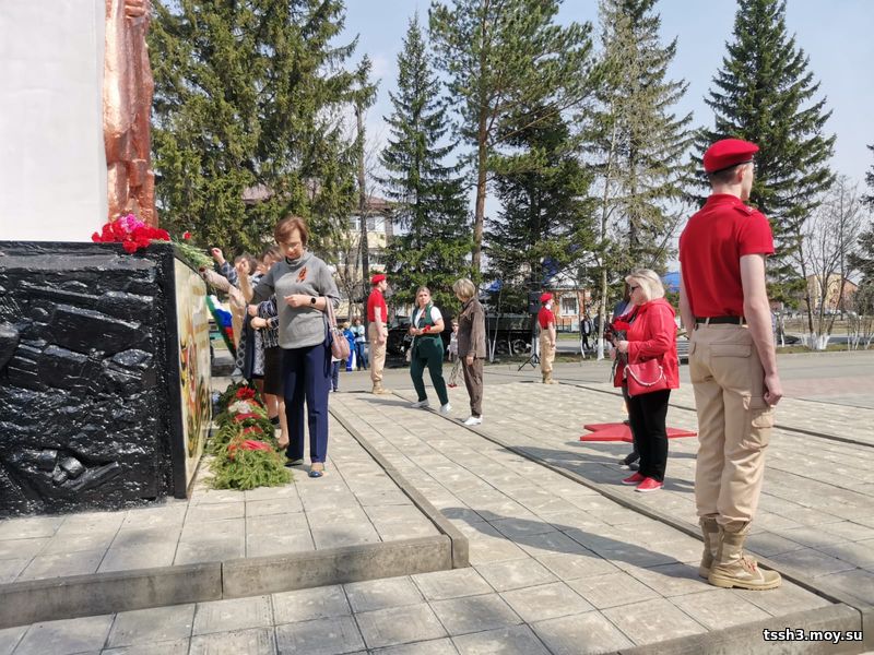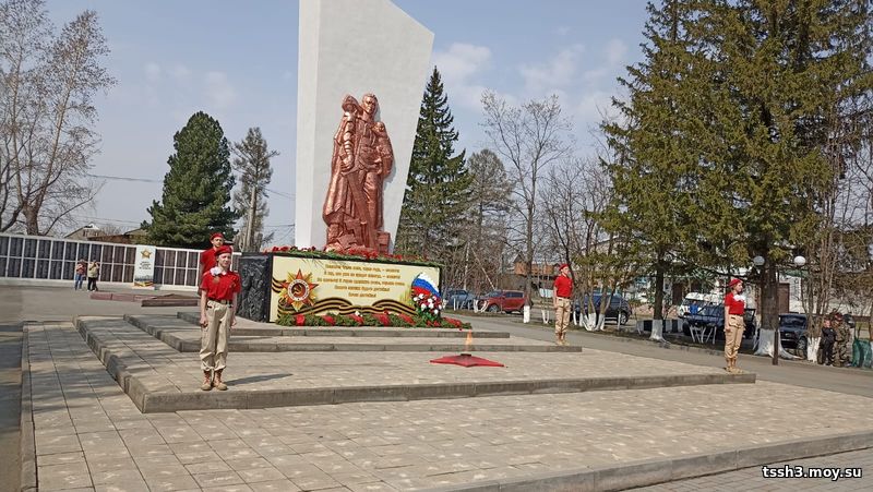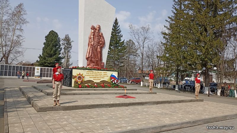Возложение цветов учашимися школы к мемориалу Воинской славы. с. Преображенка