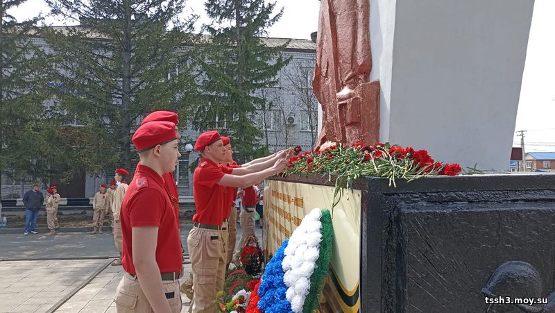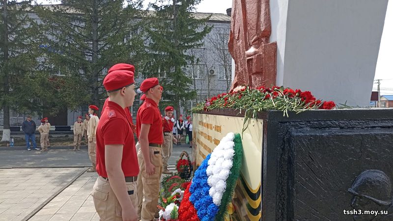 С Днём Победы! Педагоги и юнармейцы команды БАРС возложили цветы к памятнику Воина-освободителя.