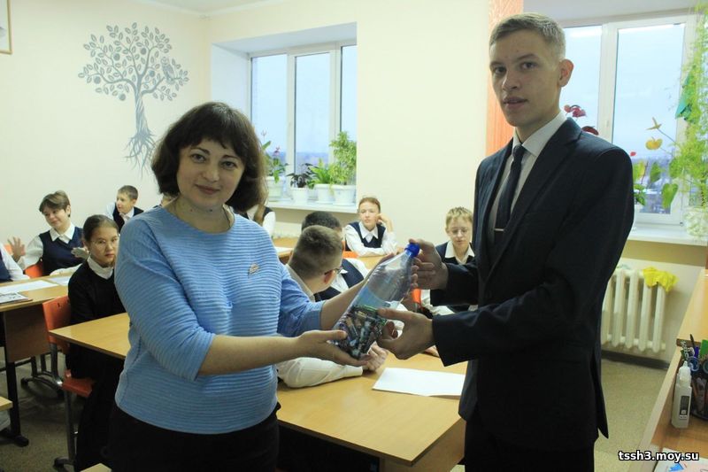 Вице-президент школьного самоуправления "Лидер" Потапов Дмитрий и активисты волонтерского отряда "ДОБРОволец" приняли участие в экологической акции "Спаси природу-сдай батарейку". К акции присоединились учащиеся и педагоги школы.