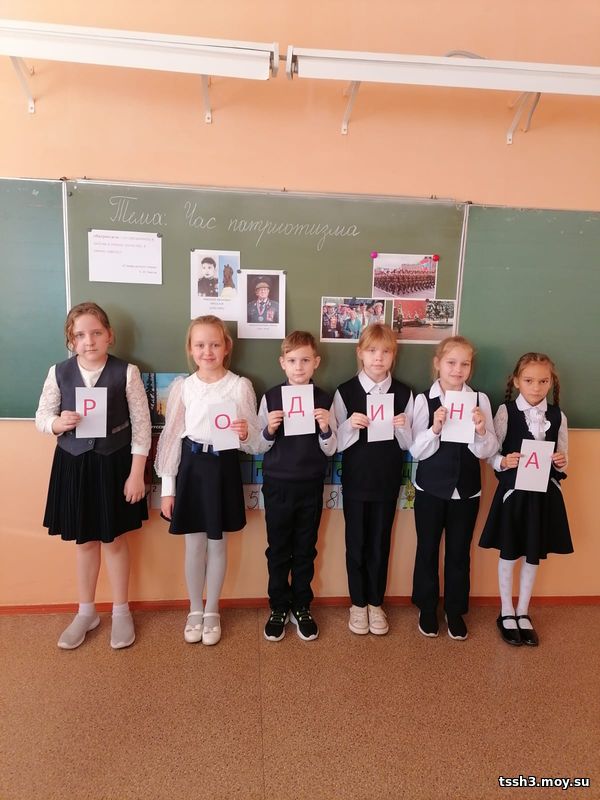 В 3-х классах прошел час патриотизма "Призван Родину защищать". Учащиеся познакомились с историей возникновения праздника. Еще раз вспомнили имена героев нашей необъятной Родины, узнали имена героев нового времени. Также выяснили, какое значение имеет принятие военной присяги.
