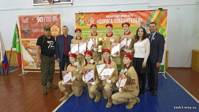 Поздравляем команду школы "БАРС" с победой в межмуниципальной военно-спортивной игре среди юнармейцев Кемеровской области "Дорога победителей", посвященной памяти воина-земляка, Героя Кузбасса Н.И. Масалова.Состав команды: Василенко Дмитрий (командир), Петричук Сергей, Потапов Дмитрий, Шелковников Евгений, Баутинова Ульяна, Тимошенко Алина, Малькова Владлена, Кузоро Анастасия. Руководитель: Балабов Александр Геннадьевич