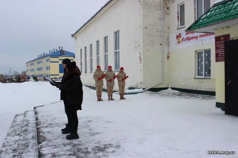 «Память, которую мы не теряем» - возложение цветов к мемориальной доске «В годы Великой Отечественной войны в здании Тяжинской школы №3 по адресу: улица Коммунистическая-3, с осени 1941 по весну 1943, находился госпиталь № 3045 под руководством военврача третьего ранга С.В. Лаврова», посвященное 79-ой годовщине снятия блокады Ленинграда.