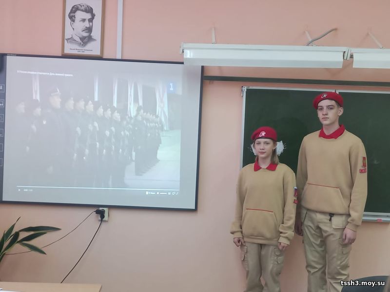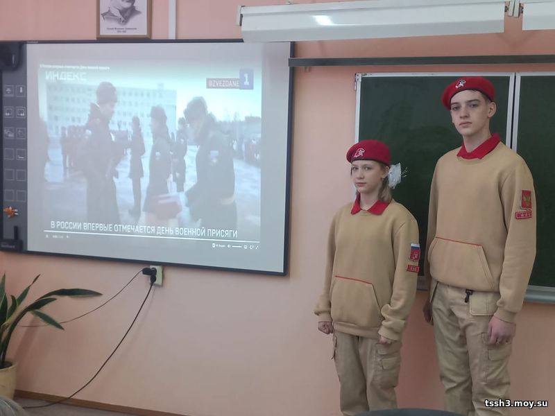 Участники военно - патриотического клуба "Честь и доблесть", юнармейцы отряда «БАРС» Малькова Владлена и Шелковников Евгений познакомили ребят с традициями приведения к военной присяге во времена Петра Великого, в советское время и в современной России. Рассказали о подвигах участников специальной военной операции, которые остаются верны военной присяге.